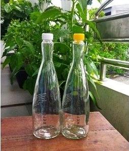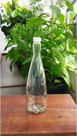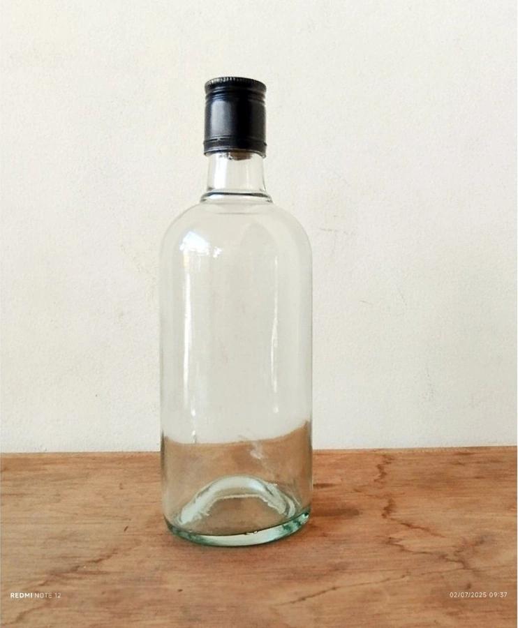 Botol kaca 750ml untuk air mineral berkualitas. Tinggi = 29.5cm, Diameter bawah Botol = 8.5cm, Diameter Tutup = 28mm