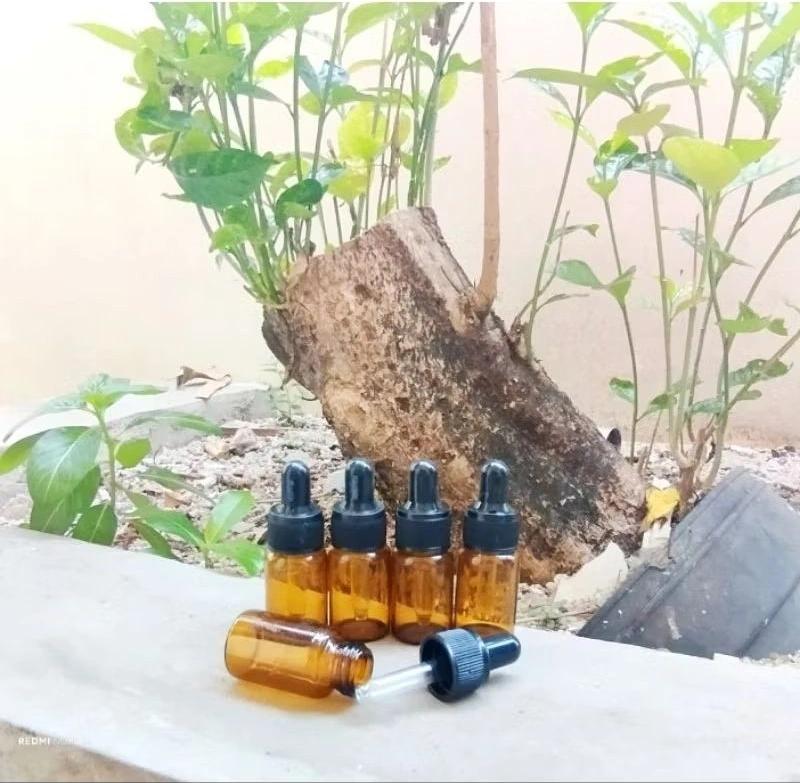 Botol kaca 10ml tutup pipet untuk essential oil. Tinggi = 7cm, Diameter = 2.3cm, Volume = 10ML