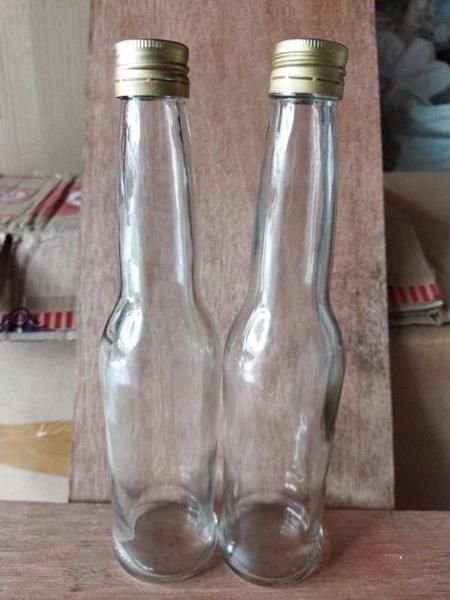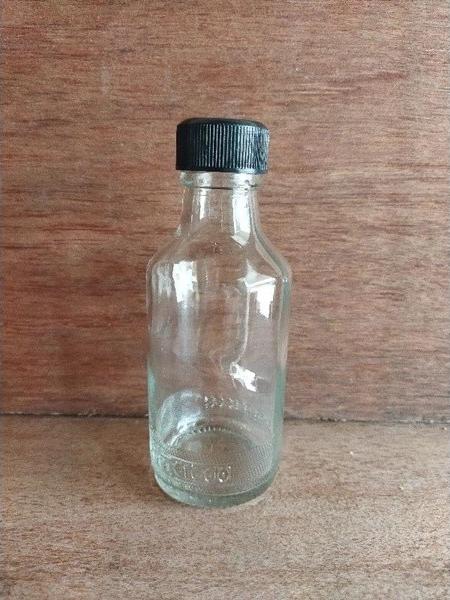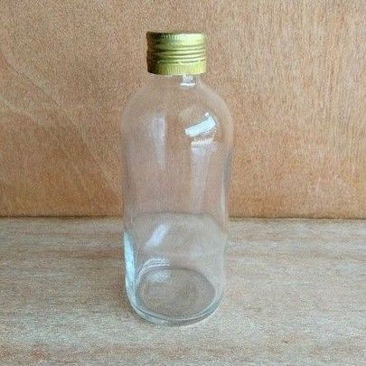 Botol kaca 150ml untuk minuman dan produk cair. Tinggi = 12.5 cm, Diameter Botol = 5cm, Volume = 150ML