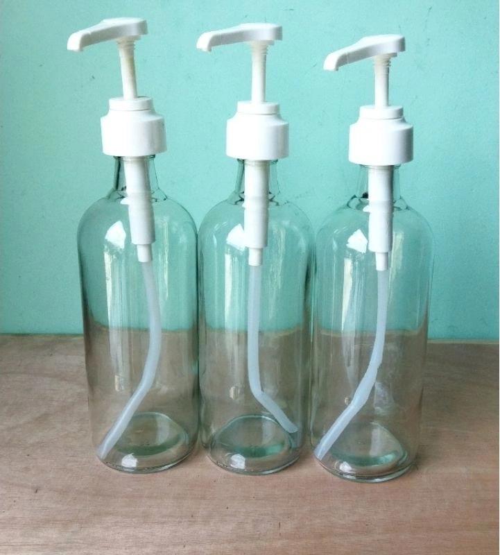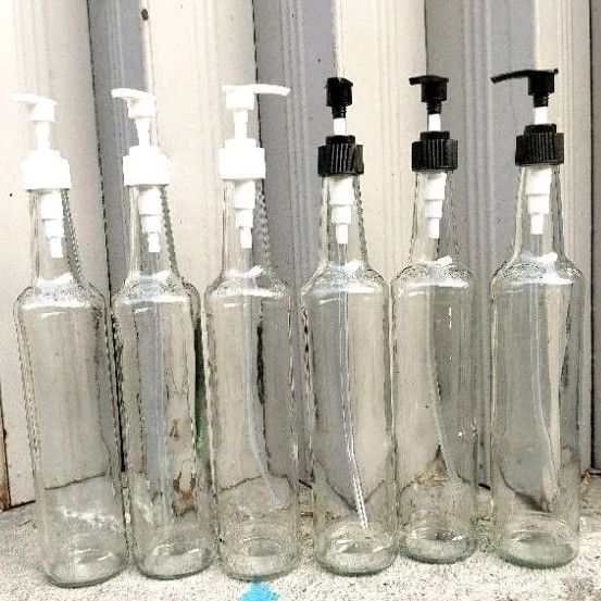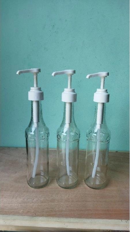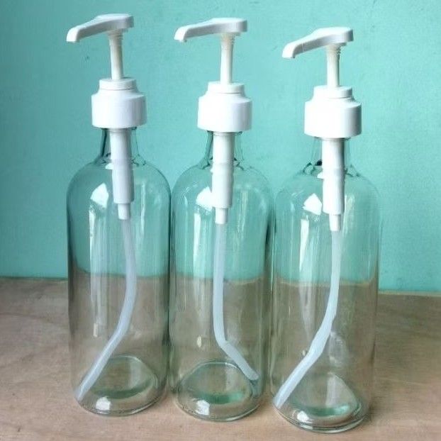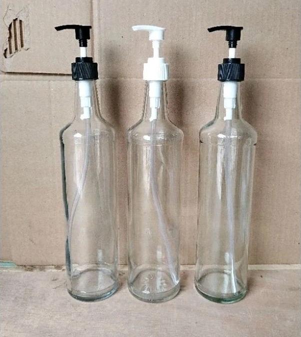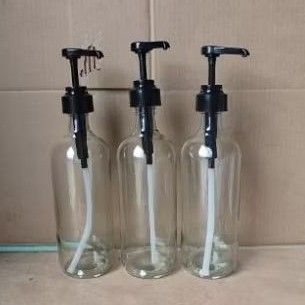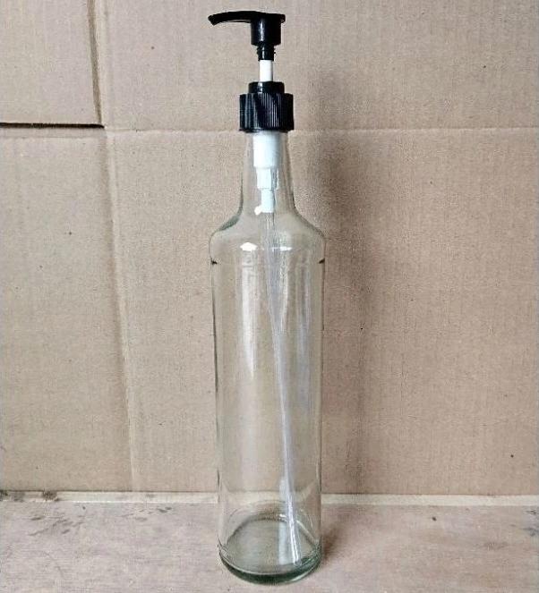 Botol kaca 700ml dengan pump dispenser praktis. Tinggi = 36 cm, Diameter = 7.5cm, Volume = 700ML
