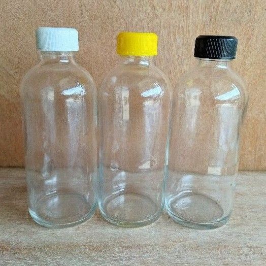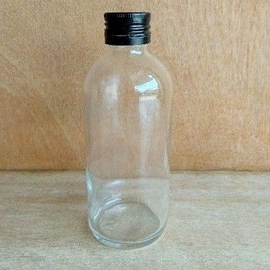 Botol kaca 250ml polos tutup ulir serbaguna. Tinggi = 15.4cm, Diameter = 5.6cm, Kapasitas = 250ML