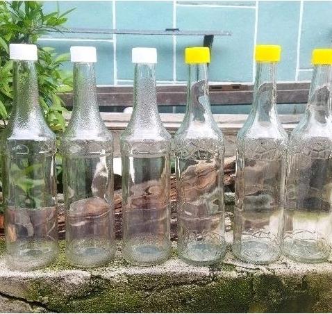 Botol kaca 600ml drum untuk berbagai keperluan. Tinggi = 29cm, Diameter Botol = 6.8cm, Volume = 600ML
