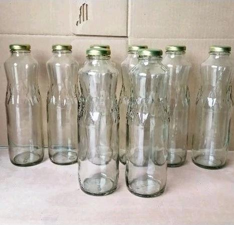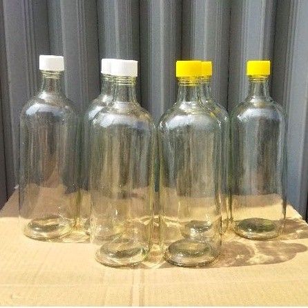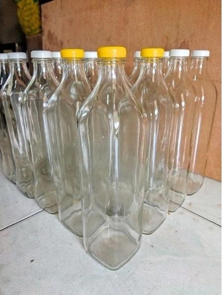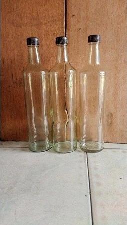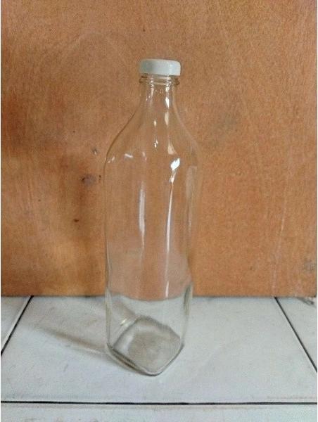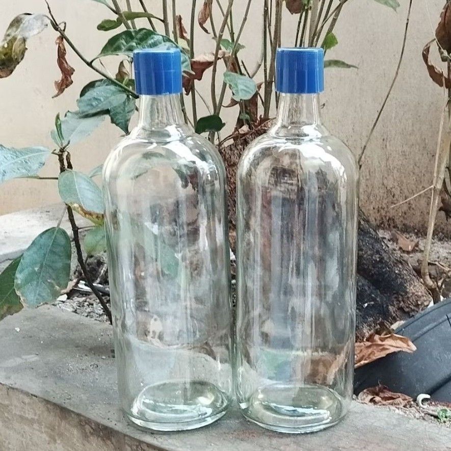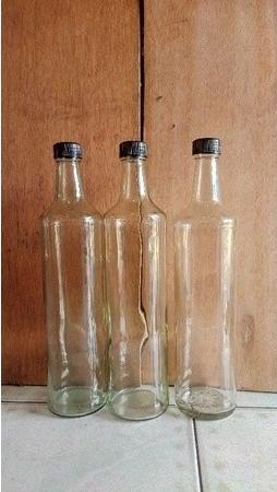 Botol kaca 1 liter serbaguna tutup plastik. Tinggi botol = 28cm, Diameter = 8cm, Volume = 1000ML