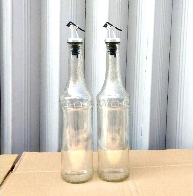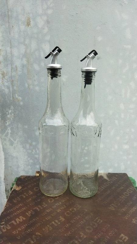 Botol kaca 700ml dengan tutup dispenser dan ulir. Tinggi = 31cm, Diameter = 7.5cm, Volume = 700ML