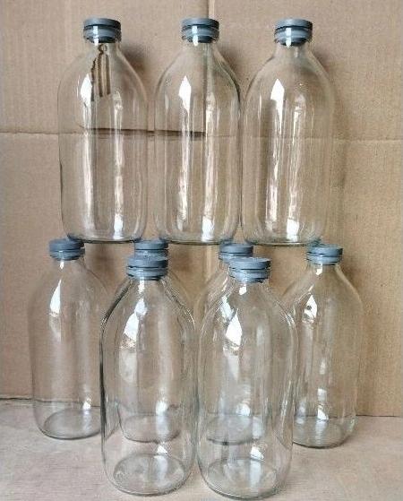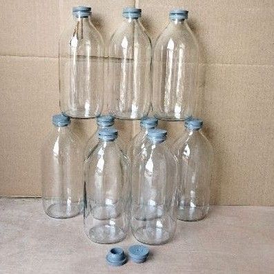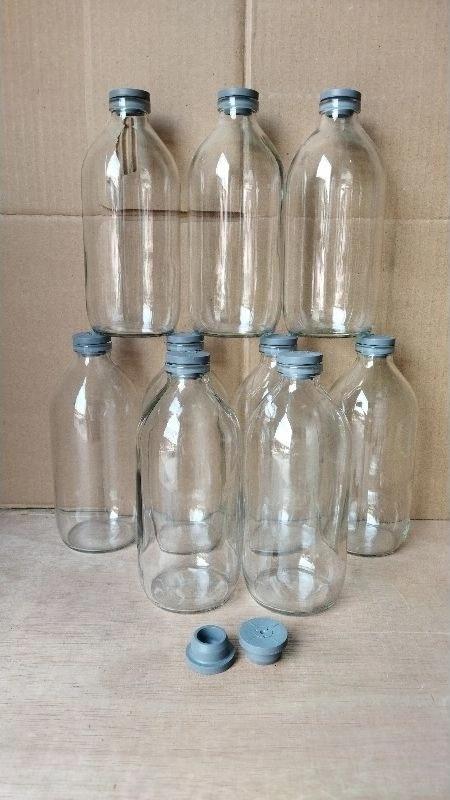 Botol kaca 500ml tutup karet untuk infus. Tinggi = 18cm, Diameter Botol = 7,5cm, Volume = 500ML
