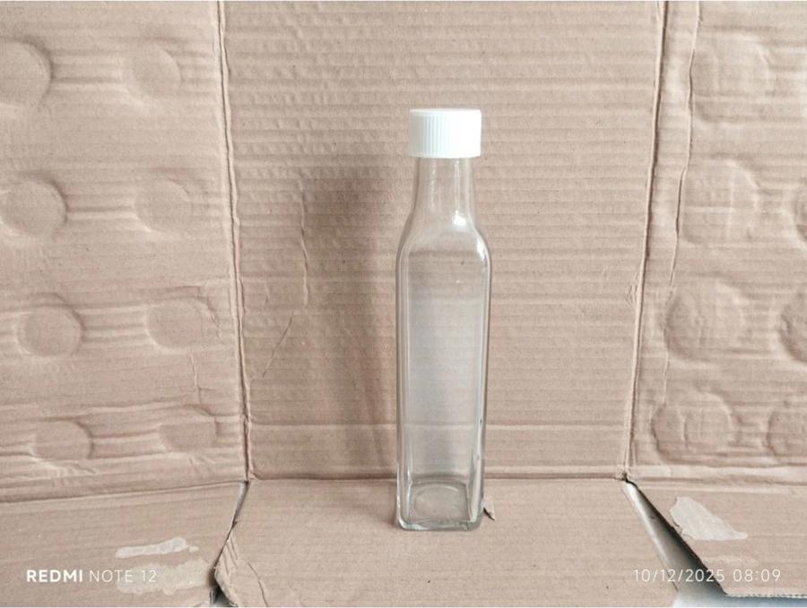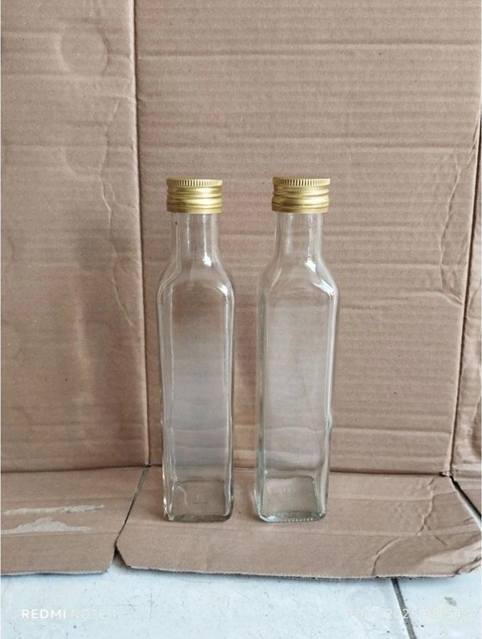 Botol kaca kotak 250ml tutup ulir praktis. Tinggi = 21.5, Diameter = 4.6cm, Volume = 250ML