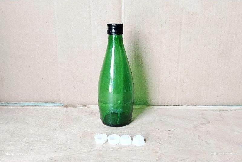 Botol kaca 275ml tutup ulir untuk minuman. Tinggi = 26cm, Diameter = 5.5cm, Volume = 275ML