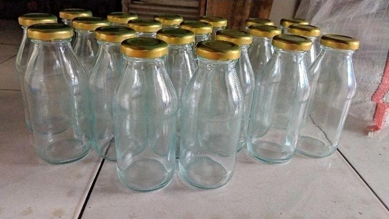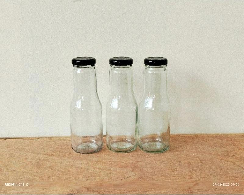 Botol kaca 280ml untuk jus dan minuman segar. Tinggi = 14.5cm, Diameter = 6cm, Volume = 280ML