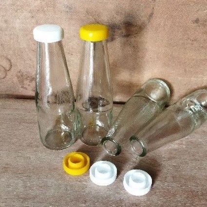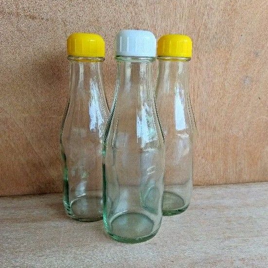 Botol kaca 200ml untuk saos dan bumbu. Tinggi = 17cm, Diameter Botol = 5.2cm, Volume = 200ML
